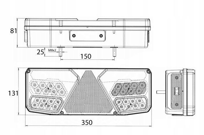 LAMPA TYŁ P (LED, 12/24V, Z KIERUNKOWSKAZEM, ZE ŚWIATŁEM PRZECIWMGIELNYM, ZE ŚWIATŁEM COFANIA, ZE ŚWIATŁEM STOPU, ŚWIATŁO POZYCYJNE, ODBLASK TRÓJKĄTNY, OBRYSOWE BOCZNE)