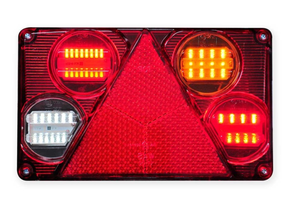 LAMPA TYLNALAMPA TYŁ P (LED, 12/24V, CZERWONY, Z KIERUNKOWSKAZEM, ZE ŚWIATŁEM PRZECIWMGIELNYM, ZE ŚWIATŁEM COFANIA, ZE ŚWIATŁEM STOPU, ŚWIATŁO POZYCYJNE, ODBLASK TRÓJKĄTNY)Informacje dodatkowe: Gwarantowana jakość i dopasowanie. Możliwość dopasowania