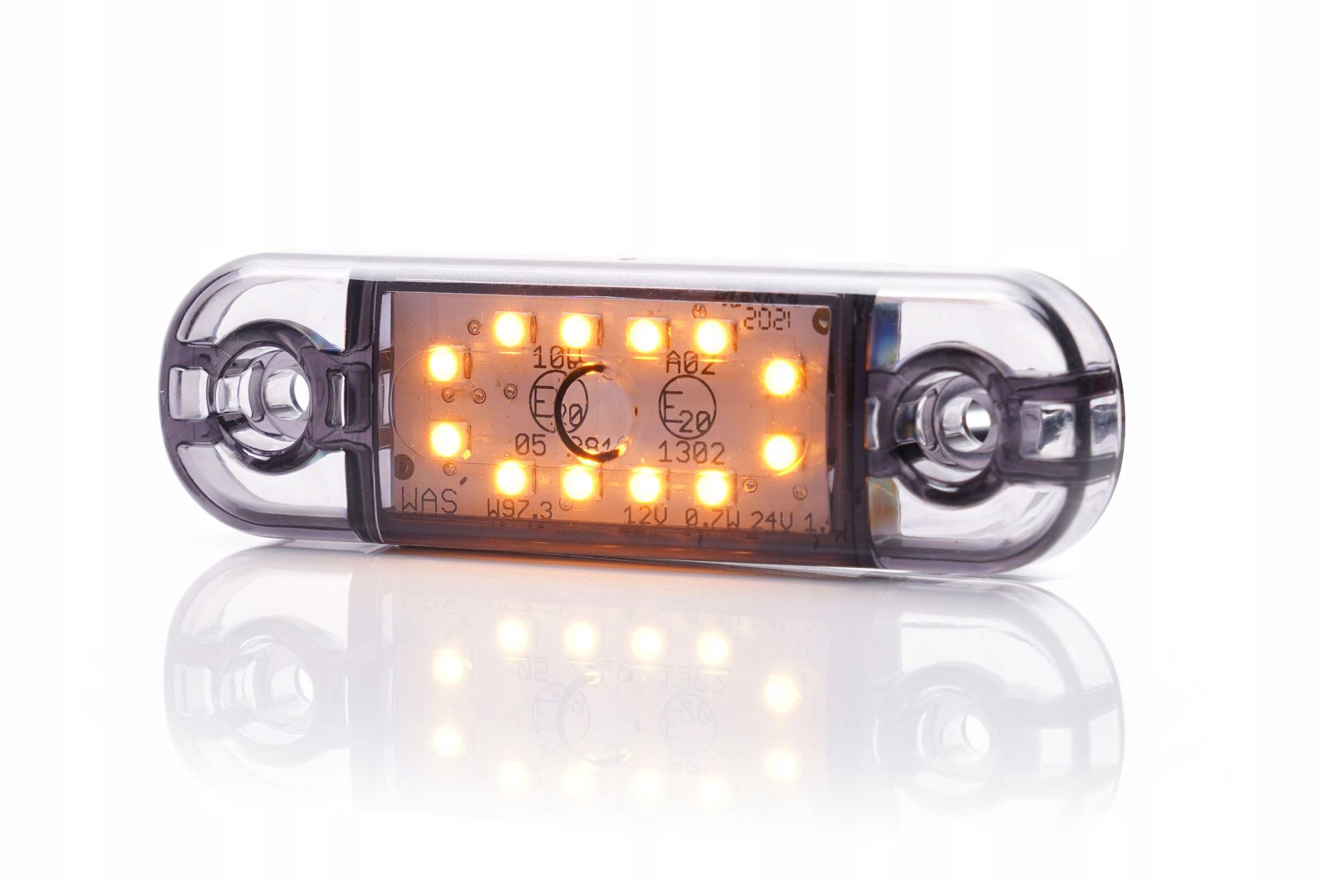 ŚWIATŁO OBRYSOWEŚWIATŁO OBRYSOWE L/P, KSZTAŁT: OWALNY, DYMIONY/POMARAŃCZOWY, LED, WYS. 24,2MM, SZER. 83,8MM, GŁ. 10,4MM, POWIERZCHNIOWA, DŁUGOŚĆ PRZEWODU 230MM, 12/24V (IP66/IP68)Informacje dodatkowe: Gwarantowana jakość i dopasowanie. Możliwość dopasowania