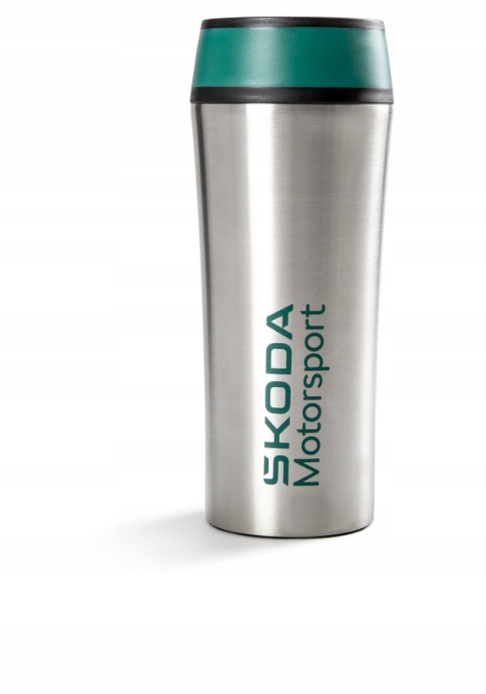 Oryginalny Kubek Termiczny Skoda Motorsport Wykonany jest z dwuściennej stali nierdzewnej, z plastikową zakrętką ułatwiającą napełnianie. Korpus kubka jest srebrny ze szmaragdowo zielonym nadrukiem Škoda Motorsport o wymiarach 7 x 2,5 cm, plastikowe
