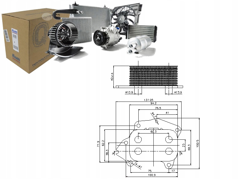 CHŁODNICA OLEJU SILNIKOWEGO (Z ELEMENTAMI MONTAŻOWYMI EASY FIT, Z USZCZELKĄ) PASUJE DO: VOLVO C30, S40 II, S60 II, S80 II, V40, V50, V60 I, V70 III, CITROEN BERLINGO 1.4D/1.6D/1.9D 01.98-