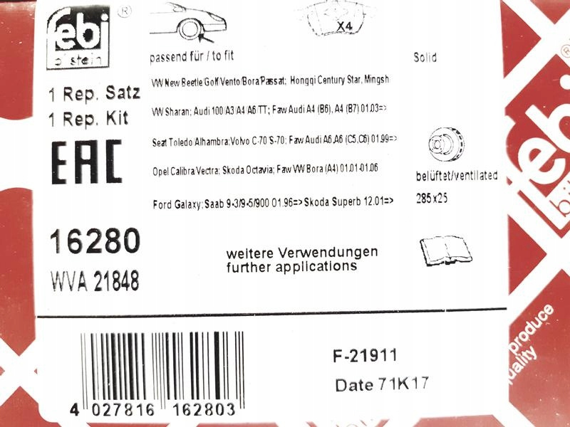 KLOCEK HAMULCOWY KPL.KLOCEK HAMULCOWY KPL. PRZÓD , PASUJE DO: FORD GALAXY I, GALAXY MK I, SEAT ALHAMBRA, VW SHARAN 1.8-2.8 03.95-03.10Informacje dodatkowe: Gwarantowana jakość i dopasowanie. Możliwość dopasowania części na podstawie numeru VIN (funkcja