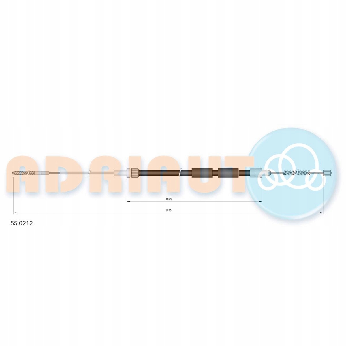 LINKA HAMULCA RĘCZNEGO TYŁ L/P (1690MM/1020MM) PASUJE DO: FIAT BALILLA 508, VW CADDY I, GOLF I, GOLF II, JETTA I, SCIROCCO 1.0-1.8 02.74-03.34