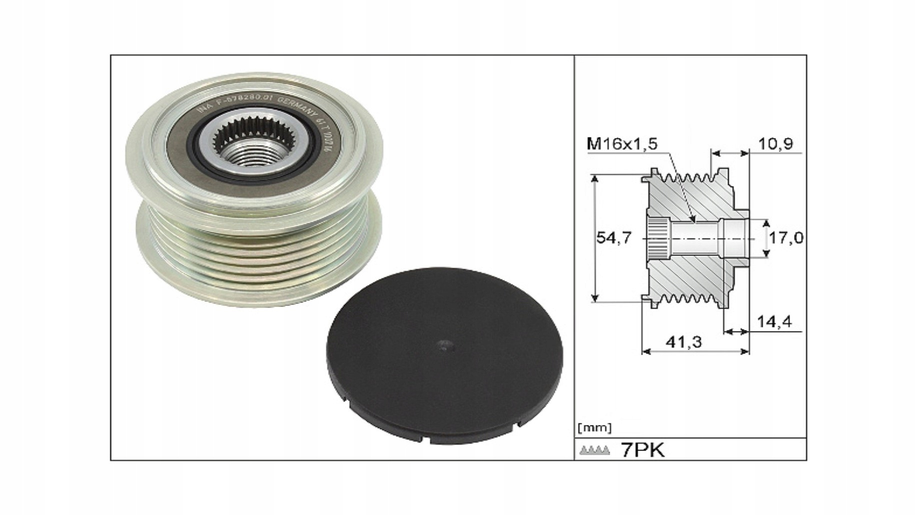 KOŁO PASOWE ALTERNATORA PASUJE DO: IVECO DAILY V, DAILY VI, FIAT DUCATO 2.3D 08.06-