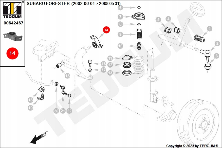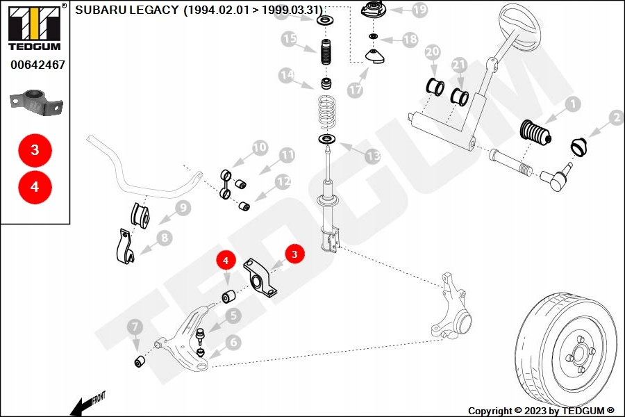 SILENTBLOCK WAHACZA PRZÓD Z TYŁU L PASUJE DO: SUBARU FORESTER, LEGACY II 2.0/2.2/2.5 02.94-05.08