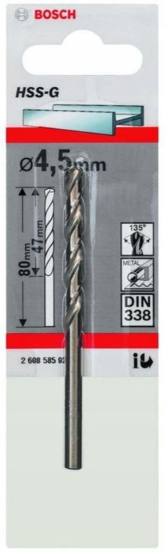 WIERTŁOWIERTŁO SPIRALNE / WALCOWA/E, 1 SZT., ŚREDNICA WIERTŁA: 4,5MM, DŁUGOŚĆ CAŁKOWITA: 80MM, DŁUGOŚĆ ROBOCZA: 47MM, PRZEZNACZENIE (MATERIAŁ, CIECZ): STAL / ŻELIWOInformacje dodatkowe: Gwarantowana jakość i dopasowanie. Możliwość dopasowania części