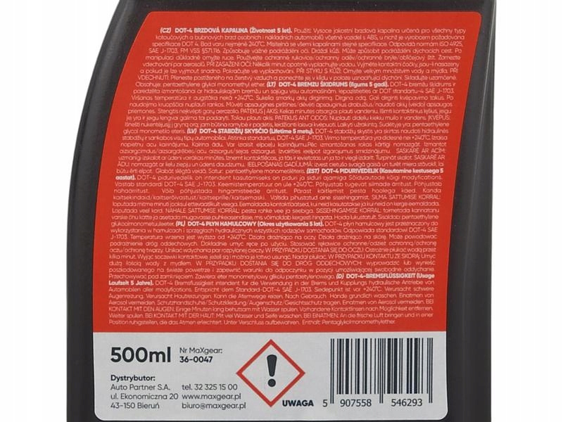 PŁYN HAMULCOWY DOT4 500MLInformacje dodatkowe: Gwarantowana jakość i dopasowanie. Możliwość dopasowania części na podstawie numeru VIN (funkcja dostępna w ramach oferty). ✅ Stan: Nowa ✅ Numer katalogowy: 36-0047