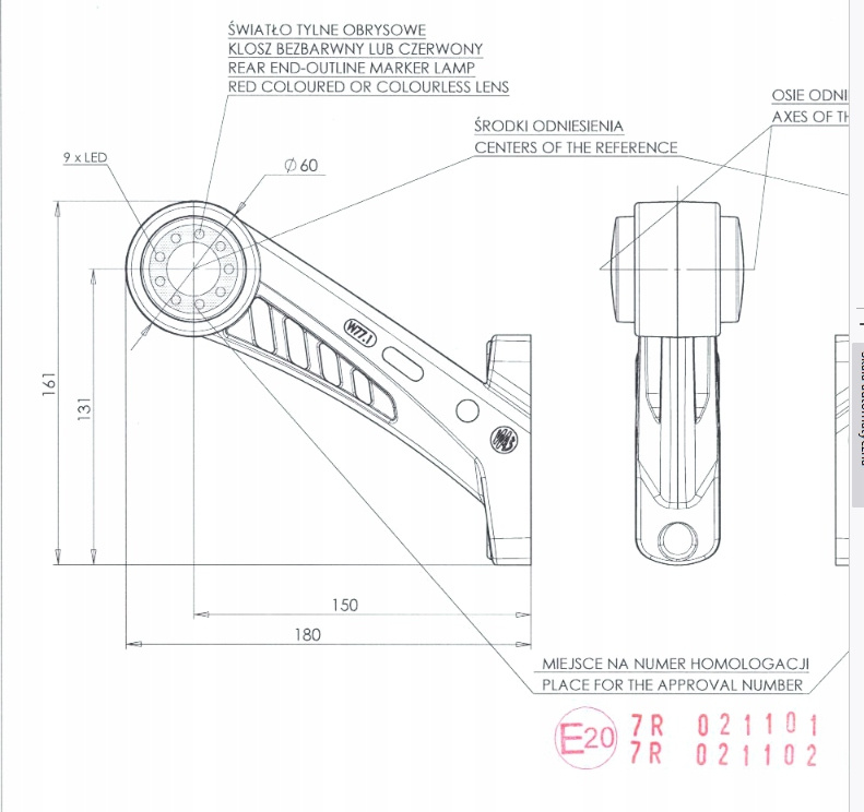 621BCP ŚWIATŁO OBRYSOWE 621BCP W77.4 WAŚ