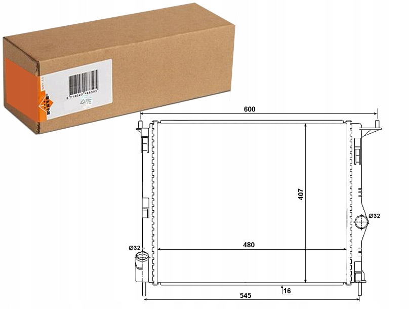 CHŁODNICA SILNIKA PASUJE DO: DACIA LOGAN, LOGAN EXPRESS, LOGAN MCV, SANDERO, LADA LARGUS, RENAULT LOGAN I 1.2-1.6LPG 09.04-