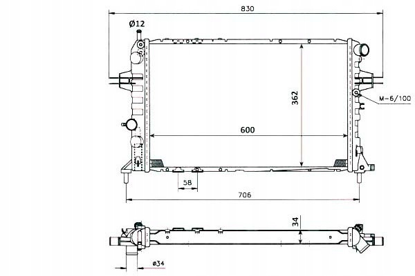CHŁODNICA SILNIKA PASUJE DO: OPEL ASTRA G, ASTRA G/KOMBI, ZAFIRA A 1.7D/1.8/2.0D 02.98-06.05