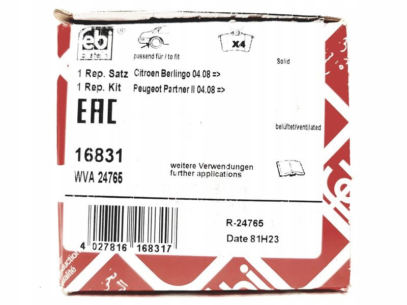 KLOCEK HAMULCOWY KPL.KLOCEK HAMULCOWY KPL. TYŁ , PASUJE DO: CITROEN BERLINGO, BERLINGO MULTISPACE, BERLINGO/MINIVAN, PEUGEOT 308 I, 308 I/KOMBI, PARTNER, PARTNER TEPEE, PARTNER/MINIVAN 1.2-ELECTRIC 09.07-Informacje dodatkowe: Gwarantowana jakość i dopasowanie.
