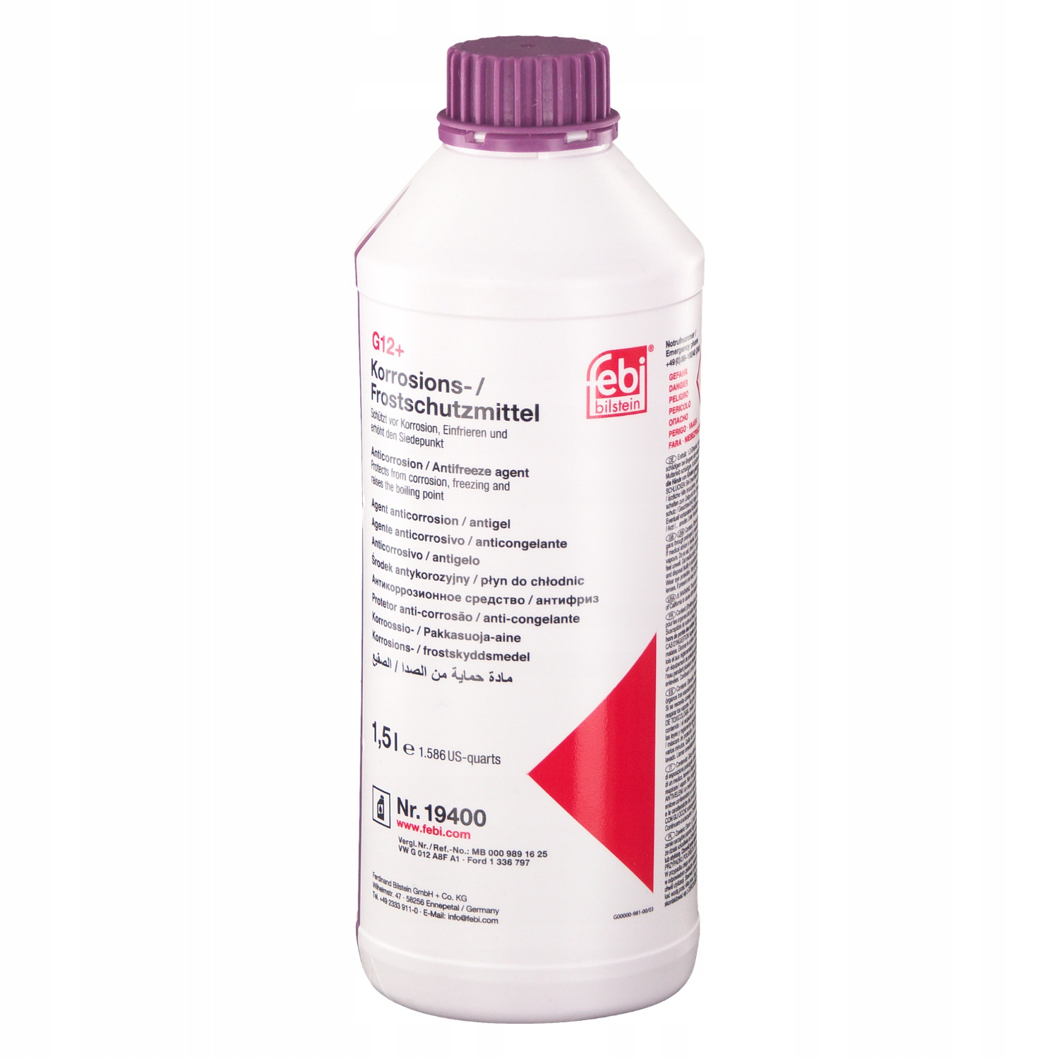 KONCENTRAT DO CHŁODNIC (TYPU G12+/G30)KONCENTRAT DO CHŁODNIC (TYP PŁYNU G12+/G30) (1,5L, 1:1=-38°C), BEZKRZEMIANOWY, FIOLETOWY, NORMA: DEXCOOL, FORD WSS-M97B44-D, MAN 324 SNF, MB 325.3, TOYOTA SLLC, VOLVO VCS, VW TL 774-D, VW TL 774-F, ZAInformacje dodatkowe: