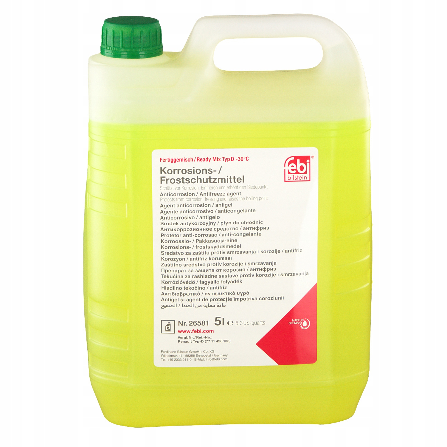 PŁYN DO UKŁADU CHŁODZENIAPŁYN DO CHŁODNIC (5L, -35°C), BEZKRZEMIANOWY, ZIELONY, NORMA: RENAULT GLACEOL RX TYPE D, ZAWIERA: GLIKOL MONOETYLENOWYInformacje dodatkowe: Gwarantowana jakość i dopasowanie. Możliwość dopasowania części na podstawie numeru VIN