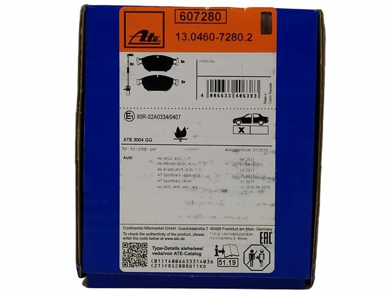 KLOCEK HAMULCOWY KPL. PRZÓD , PASUJE DO: AUDI A6 ALLROAD C7, A6 C7, A7, A8 D4 1.8-6.3 11.09-09.18