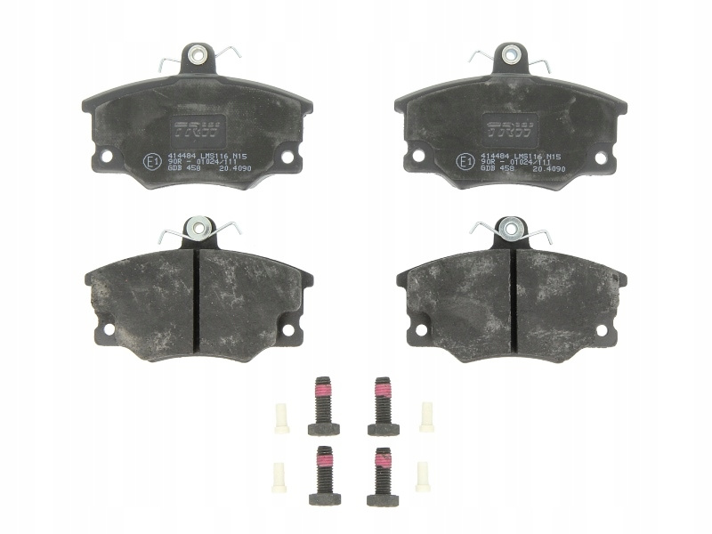 KLOCEK HAMULCOWY KPL.KLOCEK HAMULCOWY KPL. PRZÓD (Z DODATKAMI, ZE ŚRUBAMI PROWADZĄCYMI ZACISKU HAMULCOWEGO), PASUJE DO: ABARTH RITMO, ALFA ROMEO 145, 146, 155, SPIDER, FIAT ARGENTA, BARCHETTA 1.0-ELECTRIC 07.77-06.06Dobieramy części pod nr VIN GDB458LPR05P094