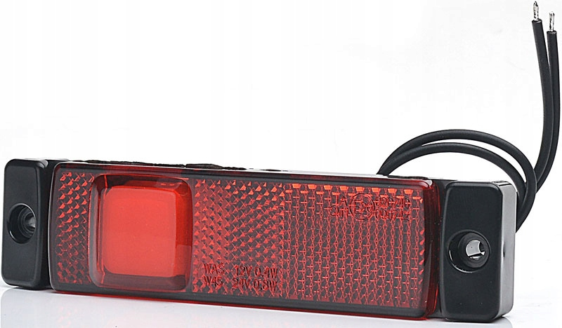 ŚWIATŁO OBRYSOWE L/P, CZERWONY, LED, WYS. 32MM, SZER. 130MM, GŁ. 20MM, PODWIESZANA, DŁUGOŚĆ PRZEWODU 210MM, Z WIESZAKIEM, 12/24V